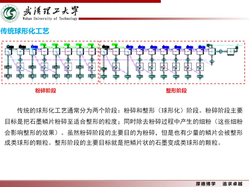 武漢理工大學的邱楊率博士帶來《石墨球形化工藝及研究進展》的報告,他的報告從主要包括四個方面即為什么要進行球形化、石墨球形化基本原理、石墨球形化工藝及裝備、石墨球形化發展趨勢,邱老師對每一板塊的內容都作了詳盡的解釋說明。