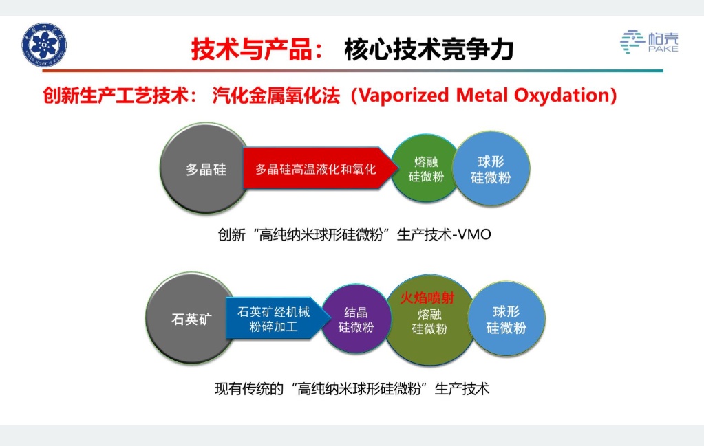 中國科學院蘇州納米技術與仿生研究所的李豐研究員帶來《新型球形高純納米硅微粉的制備技術》的報告,報告從硅微粉材料性能及球形化制備技術簡介、球形高純納米硅微粉:環氧塑封料關鍵材料、新型球形高純硅微粉制備技術及其競爭優勢以及產品應用市場及其技術延伸四個方面展開。他向大家分享了研究團隊研發的一種創新的高純納米球形硅微粉的生產技術:汽化金屬氧化法,詳細的闡述了這種新型制備工藝的競爭優勢。