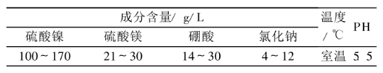 電鍍是一種電化學過程,也是一種氧化還原過程。電鍍Ni是將零件浸入Ni鹽的溶液中作為陰極,金屬Ni板作為陽極,接通直流電源后,在零件上就會沉積出金屬Ni鍍層。電鍍Ni法是1950年Brenner等發現的,美國高氏公司采用的就是電鍍Ni法。