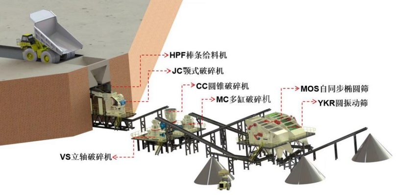 破碎設備用于將所給物料進行不同程度的破碎,以得到一定粒型級配的顆粒物料。