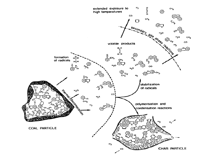 圖1煤熱解兩步反應(yīng)機(jī)理示意圖