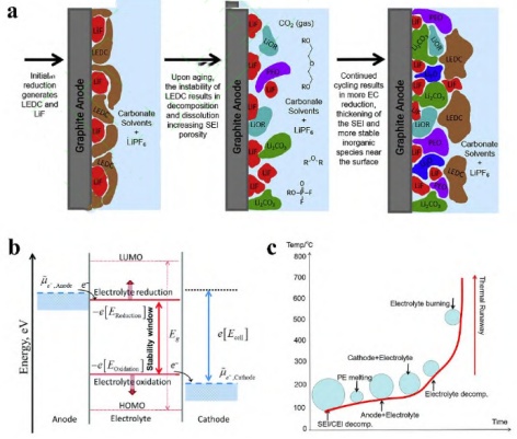 中國粉體網訊 作為電動車的關鍵部件,鋰離子電池的安全性不容忽視。熱失控是鋰離子電池事故的重要形式之一。電池內部溫度升高會引發一系列放熱反應。熱量在電池內部積累,會進一步加快反應速率,造成電池溫度急劇升高,產生可燃氣體并破壞電池內部結構,甚至導致火災或爆炸。研究表明,鋰離子電池熱失控過程與電池內部固體電解質界面(SEI)膜密切相關。