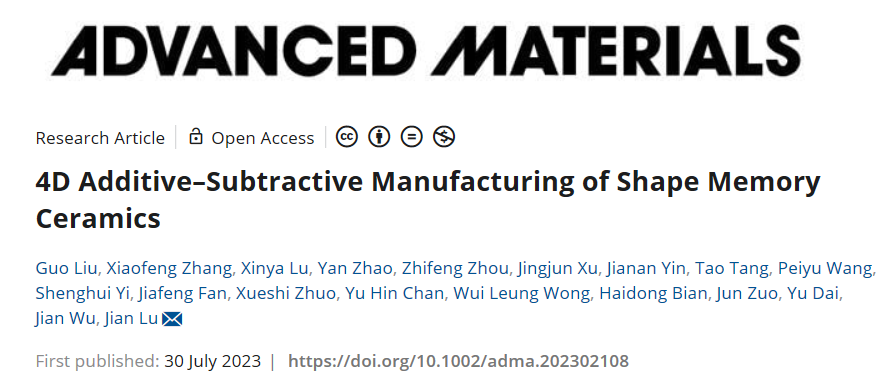 7、Liu, Guo, et al.,《4D additive–subtractive manufacturing of shape memory ceramics》