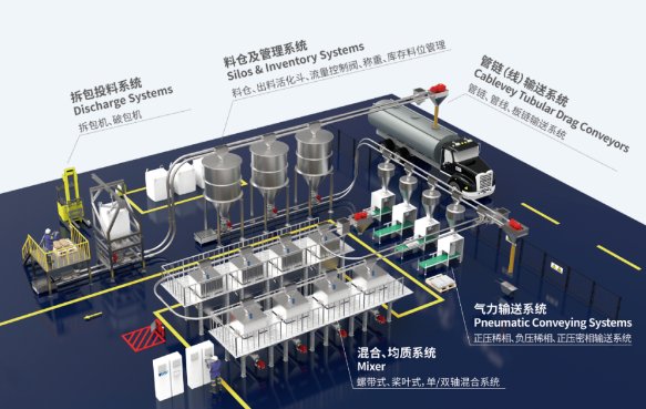 克伯韋產品包括:管線輸送系統、管鏈輸送系統、氣力輸送系統、真空上料系統、板鏈輸送系統、自動拆包投料系統、Z/C型斗式提升機、螺旋輸送、儲存倉、3D物位成像系統、輔助出倉系統、稱重配料系統、混合機、控制閥、震動喂料器、旋轉喂料閥、除塵器等。