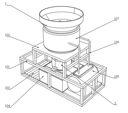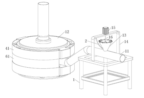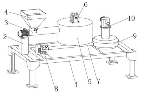 摘要:通過螺旋扇葉對進料斗內部的物料進行攪動和輸送,使進料斗內部的物料能夠快速順利的通過進料斗進入到輸料管內部,然后被輸料管內部的氣流帶動進入至粉碎腔內粉碎,減少物料過多堆積在進料斗內部,導致進料斗出口被堵住物料難以進行粉碎的問題,提高了粉碎的穩定性。