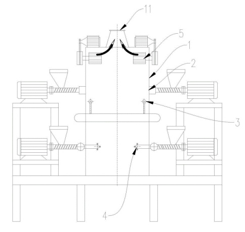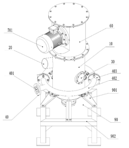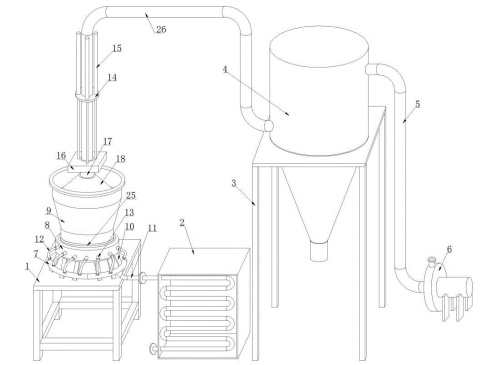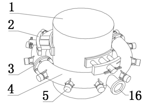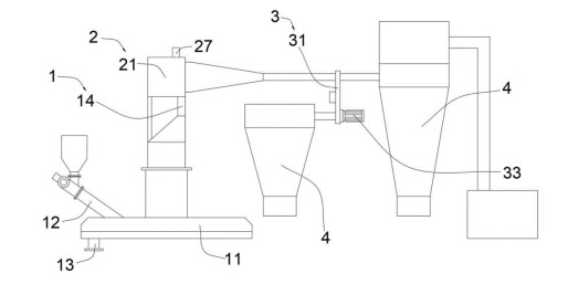 摘要:本申請的有益之處在于可將原料均勻分配分配成多份,進入到若干個文丘里管中,且若干個文丘里管采用呈環形陣列分布在圓盤型粉碎倉上方邊沿處的設計,可為圓盤型粉碎倉內部四周均勻提供原料,避免原料送入位置單一不均的問題。