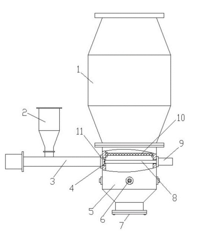 摘要:本發明主要用于解決物料進料速度過快,會造成物料堵塞,同時當物料相互堆積時,同樣會導致物料在送料管內堆積,影響下料。
