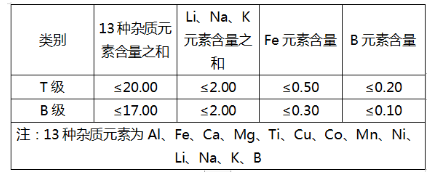 單晶硅生長用石英坩堝的雜質(zhì)元素含量要求(單位:微克/克)