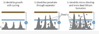 鋰枝晶生長(zhǎng)穿透界面(圖源:物理化學(xué)學(xué)報(bào))