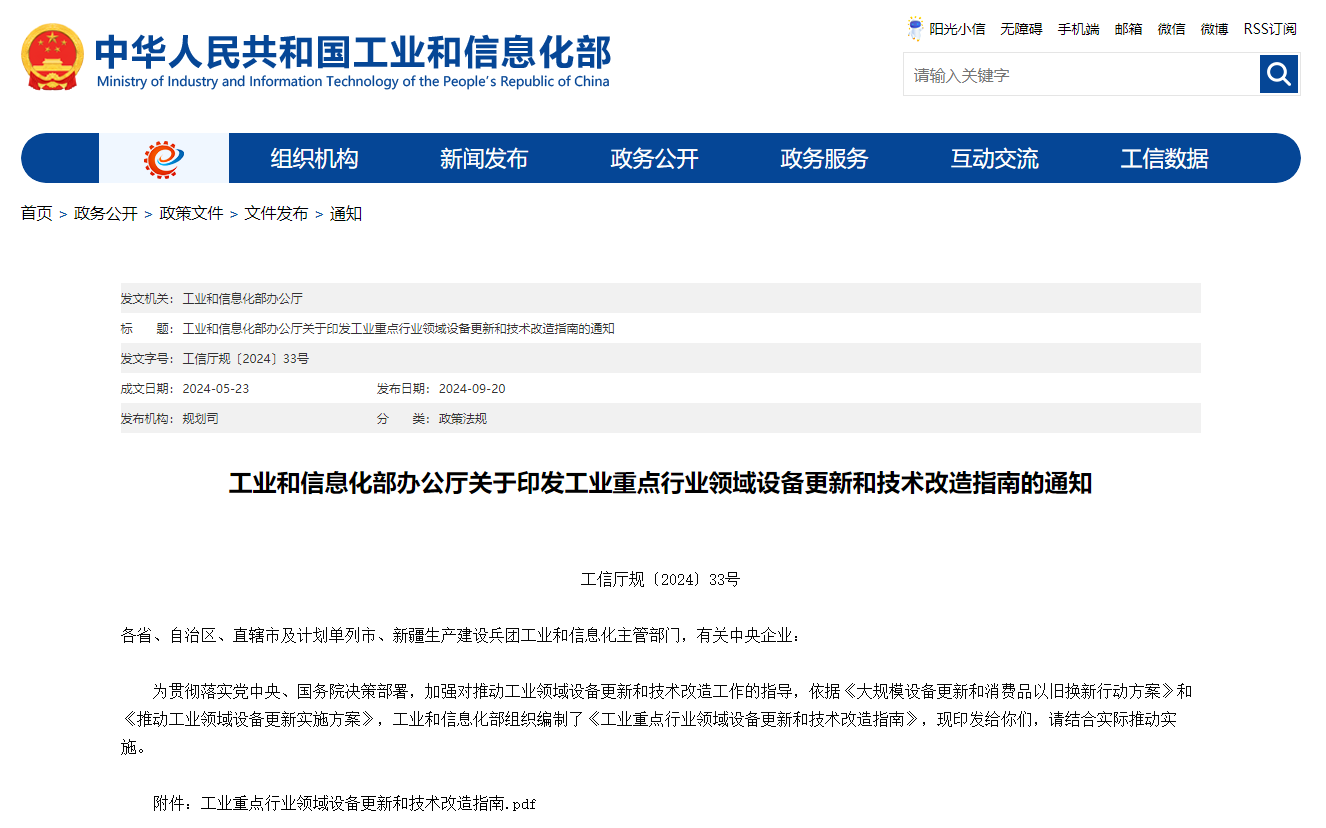 中國(guó)粉體網(wǎng)訊 工信部印發(fā)工業(yè)重點(diǎn)行業(yè)領(lǐng)域設(shè)備更新和技術(shù)改造指南。涉及有色金屬行業(yè)、建材行業(yè)、汽車行業(yè)、醫(yī)藥行業(yè)、電子元器件和電子材料行業(yè)、鋰電池行業(yè)、儀器儀表行業(yè)、光伏行業(yè)等27個(gè)重點(diǎn)行業(yè)。