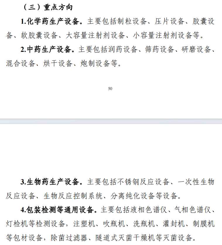 重點(diǎn)方向包括:化學(xué)藥生產(chǎn)設(shè)備、中藥生產(chǎn)設(shè)備、生物藥生產(chǎn)設(shè)備、包裝檢測(cè)等通用設(shè)備、工業(yè)操作系統(tǒng)、工業(yè)軟件。