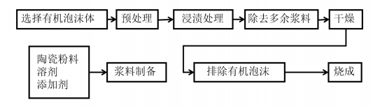 有機泡沫浸漬法制備多孔陶瓷流程圖