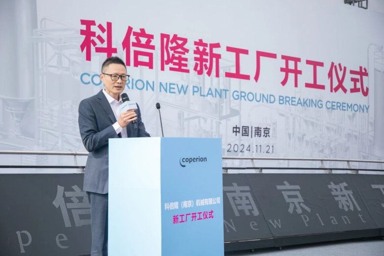 科倍隆集團(tuán)總裁 Ulrich Bartel 首先登臺致辭。他表示,科倍隆進(jìn)入中國已近40年,南京公司成立20年來成績斐然,納稅排名逐年提升,集團(tuán)對中國市場充滿期待,新工廠將成為科倍隆在亞洲的制造基地。Bartel感謝當(dāng)?shù)卣С帧⒖蛻艄?yīng)商信任及員工努力,期待新工廠順利竣工,共創(chuàng)美好未來。