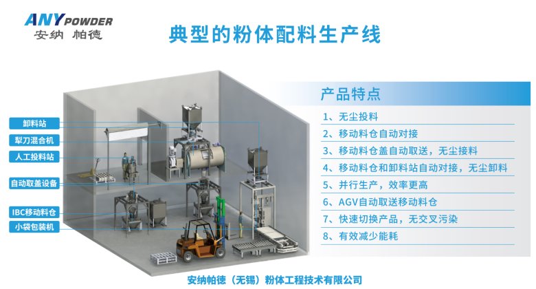 潘總:我們現(xiàn)在包括已經(jīng)做了后段的整體工藝,安納帕徳未來(lái)的目標(biāo)方向主要是整合后處理系統(tǒng),從前端配料開(kāi)始,尤其針對(duì)客戶品種批次多或批量小的情況,發(fā)揮周轉(zhuǎn)靈活、內(nèi)部清理方便的優(yōu)勢(shì),規(guī)劃從配料、轉(zhuǎn)運(yùn)、混合到包裝整個(gè)系統(tǒng)自動(dòng)化運(yùn)行。長(zhǎng)期在后處理系統(tǒng)上去發(fā)展。