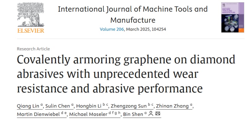 中國粉體網訊 近日,上海交通大學沈彬教授課題組在高性能磨粒領域取得了重要進展,該課題組在機械頂刊《International Journal of Machine Tools and Manufacture》發表了題為“Covalently armoring graphene on diamond abrasives with unprecedented wear resistance and abrasive performance”的研究論文,通過石墨烯以共價鍵界面裝甲金剛石磨粒,首次實現了傳統磨粒物理性能極限的突破。該研究不僅提升了傳統磨粒的耐磨損與拋光性能,也為基于液態金屬催化的微/納米顆粒表面原位改性提供了新的技術方案。
