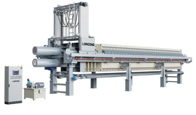 浙江隆源裝備 1000㎡快開式全自動壓濾機,高效固液分離,處理量大,自動化程度高,適用多行業復雜工況。浙江隆源裝備全自動超高壓隔膜雙缸壓濾機采用PLC控制,壓榨壓力達6.0MPa,實現高效固液分離,適用于化工、環保、礦業等領域,具有自動化程度高、濾餅含水率低等優勢。