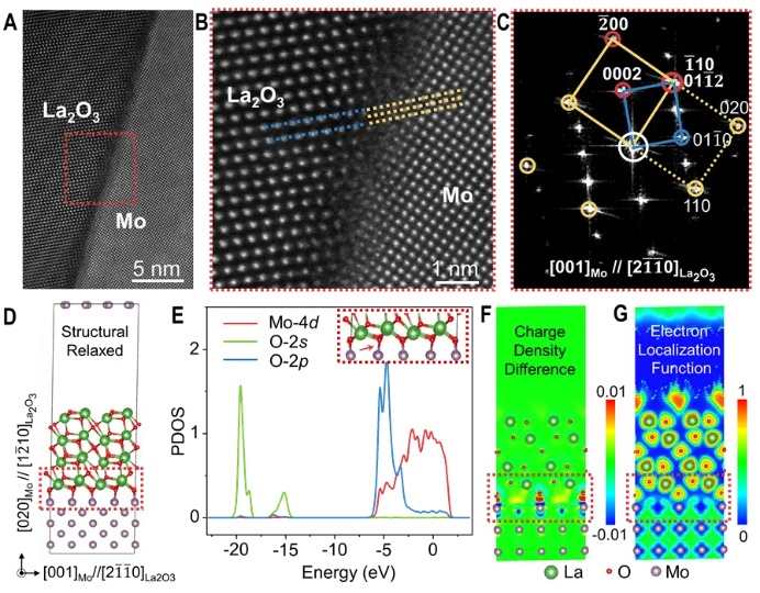 Mo-La2O3有序結合界面結構以及第一性原理計算結果,證明有序界面是化學鍵結合且晶面連續圖片來源:《科學》雜志