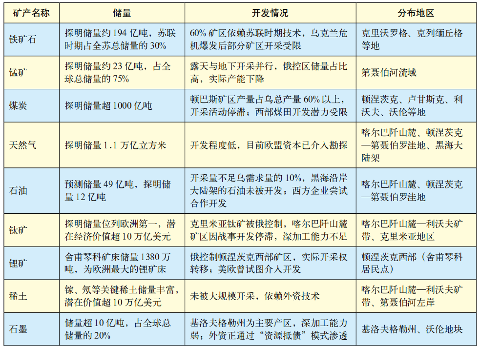 烏克蘭是世界上礦產資源最豐富的國家之一。盡管其國土面積僅占全球總面積的0.4%,但礦產儲量占世界總儲量的5%,其中包括120種最廣泛使用的礦物金屬中的117種,擁有美國認定的50種重要戰略資源中的22種,以及歐盟認定的34種重要戰略資源中的25種,總價值估計在7.5萬億至26萬億美元之間,可謂雄踞歐洲前列。