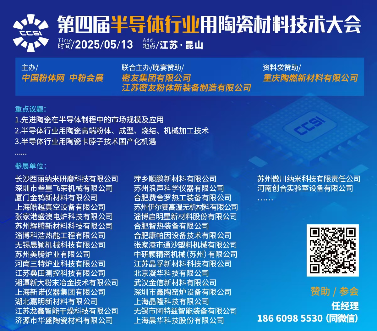 第四屆半導(dǎo)體行業(yè)用陶瓷材料技術(shù)大會(huì)將于2025年5月13日在江蘇·昆山舉辦。廈門金鎢新材料有限公司作為參展單位邀請(qǐng)您共同出席。