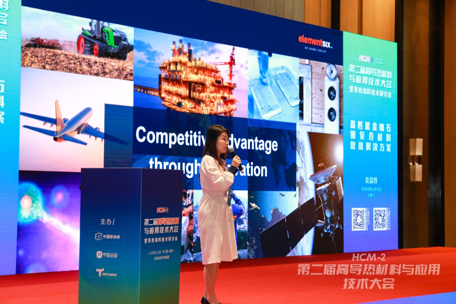 Element Six(元素六)亞洲戰(zhàn)略業(yè)務(wù)總監(jiān)秦景霞作《高性能金剛石銅復(fù)合材料散熱解決方案》報(bào)告