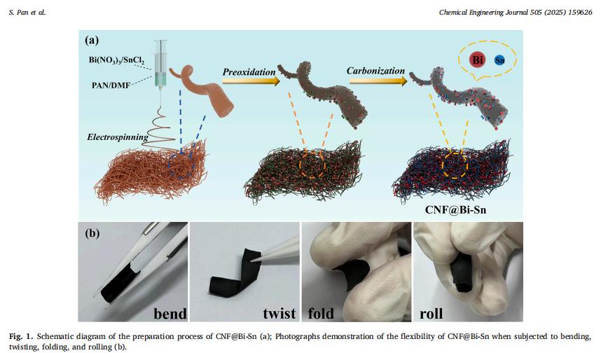 CNF@Bi-Sn的制備示意圖及其柔性展示