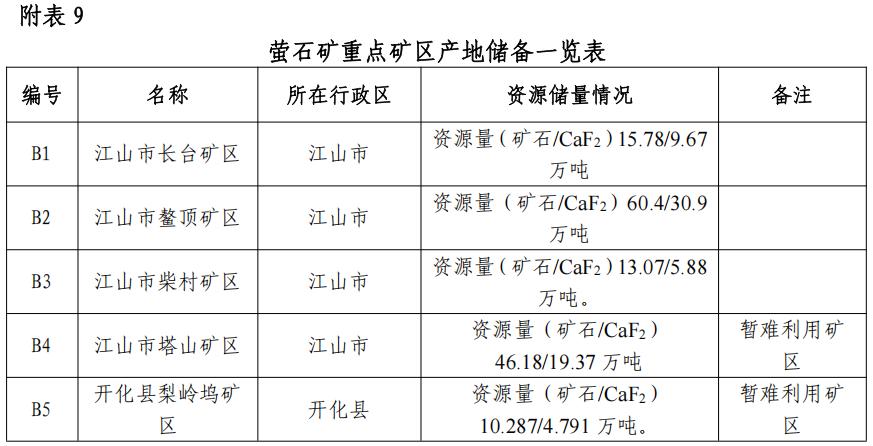 來(lái)源:《衢州市螢石礦產(chǎn)資源專(zhuān)項(xiàng)規(guī)劃(2026-2030年)(征求意見(jiàn)稿)》