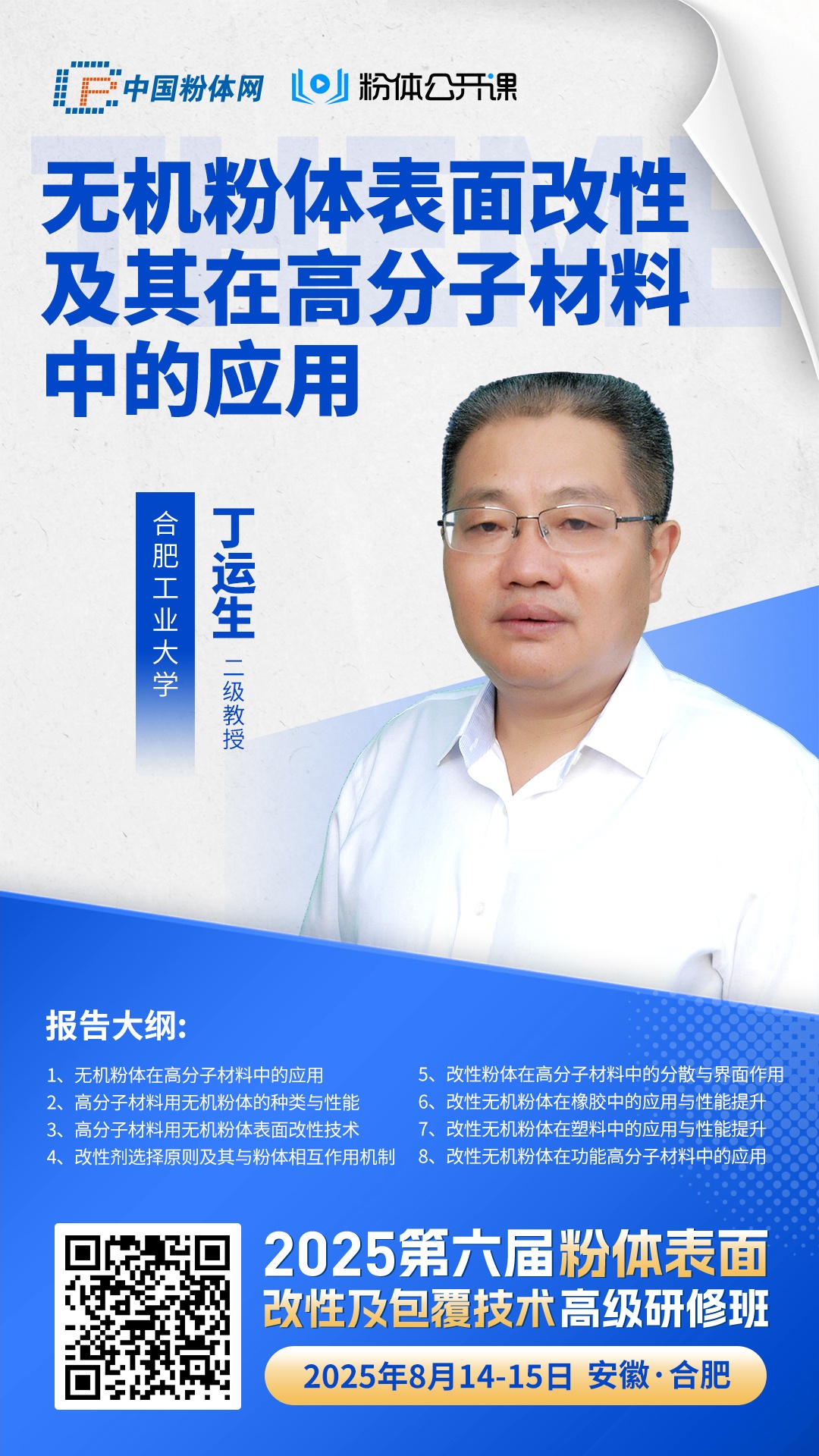 中國粉體網訊 為推動粉體表面改性及包覆技術發展,促進產學研交流合作,中國粉體網粉體公開課將于2025年8月14-15號,在安徽省合肥市舉辦“2025第六屆粉體表面改性及包覆技術高級研修班”,泰安瑞泰新材料股份有限公司邀您一同參加!