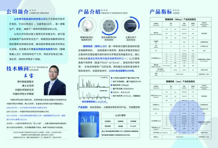 懋華新能源是一家專注于先進固態電解質材料研發、生產和銷售的科技型企業,致力于為全球新能源行業提供高性能的LLZO材料及解決方案。公司位于東營經濟技術開發區新材料產業園,擁有現代化的研發中心和生產設施,具備從原材料到成品的完整產業鏈。