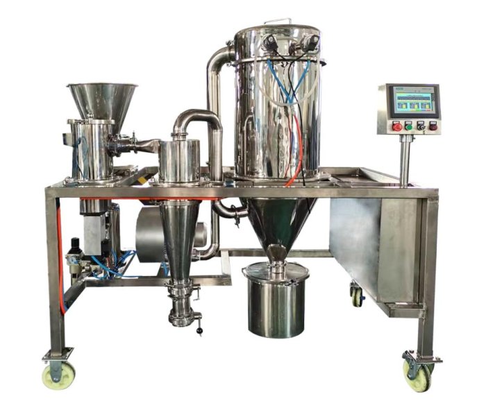 結(jié)構(gòu):兩股高速氣流裹挾物料相向沖擊,避免顆粒與設(shè)備內(nèi)壁接觸,減少污染。