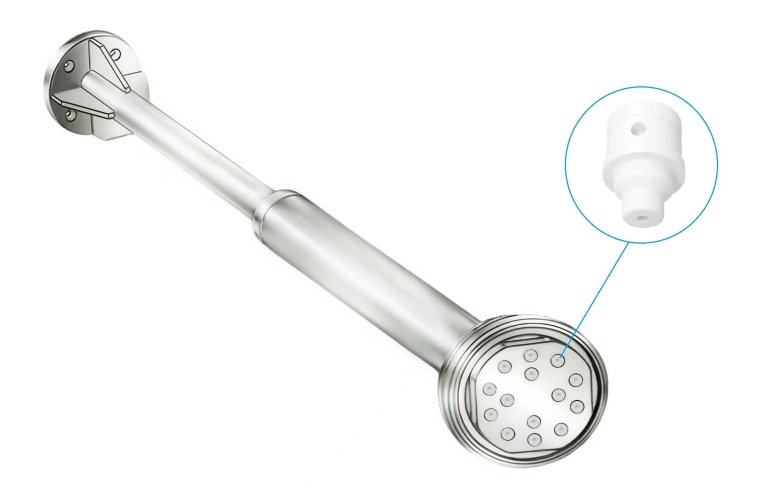 定制化的鈮合金噴盤噴槍,適用于安德里茲酸再生工藝。內置定制化過濾器,匹配噴嘴暢通孔徑,高效防堵。噴嘴安裝在一個有多個鉆孔的圓盤上,液體流經這些噴嘴,準確噴射出去。