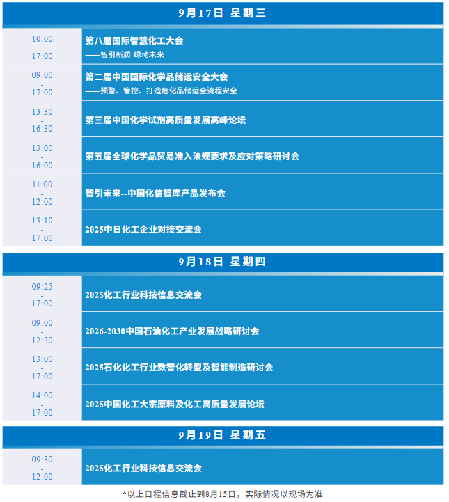 展會同期將舉辦 "中國石化產(chǎn)業(yè)論壇" 及多場高規(guī)格專題活動,涵蓋第八屆國際智慧化工大會、第二屆中國國際化學(xué)品儲運安全大會、第五屆全球化學(xué)品貿(mào)易準入法規(guī)研討會、2026-2030中國石化產(chǎn)業(yè)發(fā)展戰(zhàn)略研討會,以及中日化工企業(yè)對接會、化工行業(yè)科技信息交流會等專項活動,為與會者提供政策解讀、技術(shù)分享及商貿(mào)對接的全方位服務(wù)。
