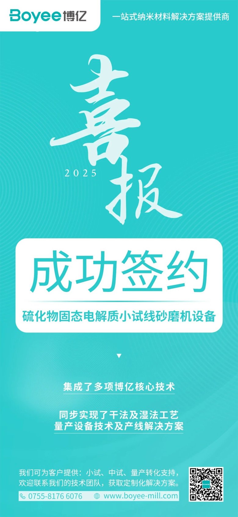 近日,博億傳來重磅喜訊,成功簽約硫化物固態電解質小試線設備。