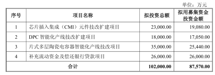 片式多層陶瓷電容器智能化產線技改項目擬投資3.5億元,項目主要為進一步推動公司電子陶瓷業務中長期策略發展方向,計劃通過新增生產線、優化生產布局、升級現有產能等方式,提升MLCC產品的整體產能供給能力,進一步提升公司高容產品良率、穩定性及生產規模,夯實業務新增長曲線底層支撐,助力公司加強MLCC業務的市場優勢,推動業務規模與盈利能力持續提升。