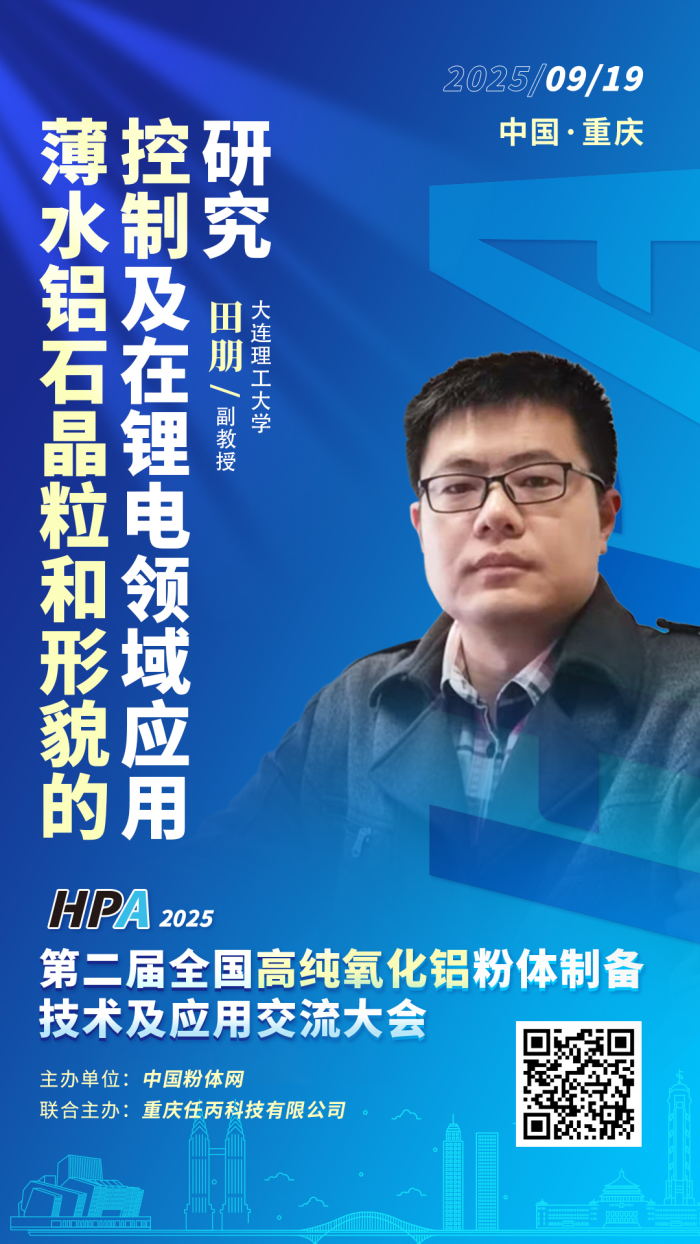 為了研究形貌和晶粒尺寸對薄水鋁石作為填料在鋰電池隔膜填料、固態電解質填料上應用性能的影響,大連理工大學田朋副教授課題組合成了不同形貌和尺寸的薄水鋁石,并將其用于鋰電池領域,以弄清相應的構效關系。9月19日,中國粉體網將在中國·重慶舉辦2025全國高純氧化鋁粉體制備技術及應用交流大會。屆時,田朋副教授將蒞臨大會并作題為《薄水鋁石晶粒和形貌的控制及在鋰電領域應用研究》的報告。