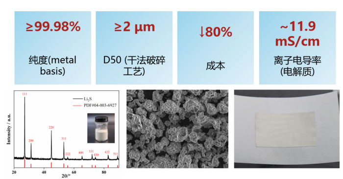 目前做的硫化鋰產(chǎn)品粒徑3微米以下,可以直接混料做硫化物電解質(zhì),不用再進一步粉碎。純度99.9%以上,目前在建規(guī)模化的產(chǎn)線。