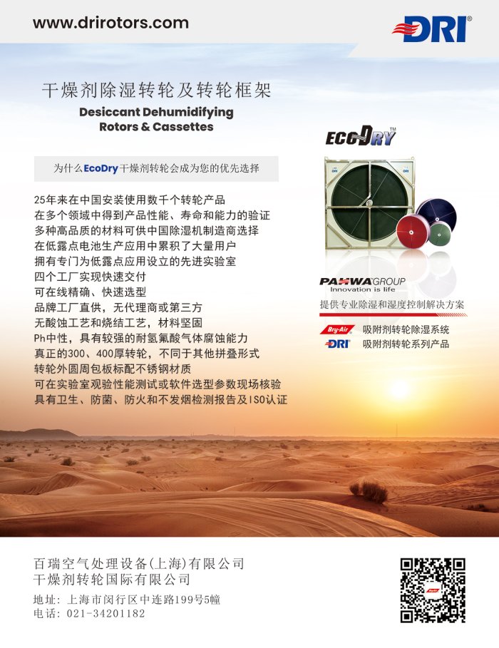 我們始終堅持以客戶為中心,提供高品質、高技術的產品。百瑞的轉輪除濕機通過直接物理吸附除濕,能夠達到出口相對濕度為 1% 的卓越性能,其標準風量范圍廣泛,覆蓋 170~40000 cmh。此外,我們還經銷同屬 Pahwa 集團的商用空氣處理設備制造商 DRI(干燥劑轉輪國際有限公司)的產品,包括 Ecofresh 熱回收轉輪、能量再生通風機和新風處理機組(TFAs)等,這些產品旨在提高室內空氣質量(IAQ)。百瑞空氣和 DRI 的產品廣泛應用于全球工商業領域,為新能源、制藥、食品加工、環保、電子等多個行業提供卓越的服務。