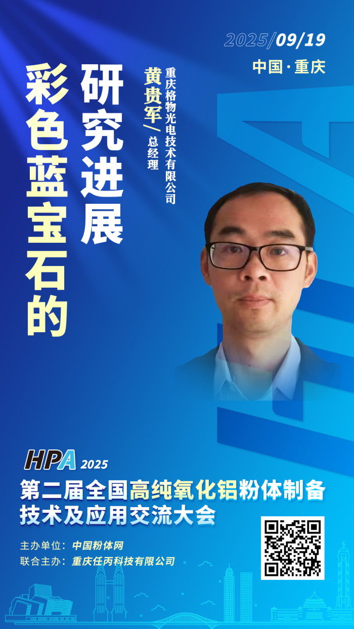 9月19日,中國粉體網將在中國·重慶舉辦2025第二屆全國高純氧化鋁粉體制備技術及應用交流大會。為進一步了解彩色藍寶石的制備工藝及應用,會務組邀請到重慶格物光電技術有限公司總經理黃貴軍蒞臨大會現場,并作題為《彩色藍寶石的研究進展》的報告。