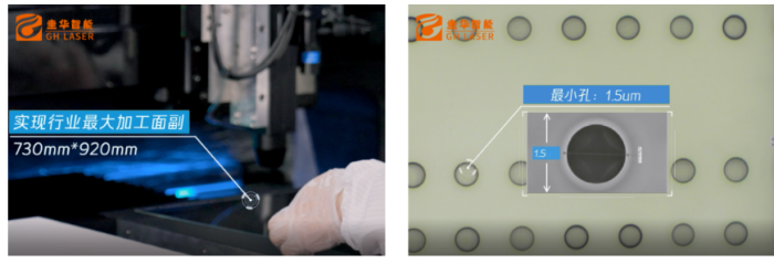 之所以能取得如此亮眼的成績,源于其獨(dú)特的技術(shù)配置。該設(shè)備配備高精密運(yùn)動平臺,確保加工過程的穩(wěn)定性與精準(zhǔn)度;搭載的GHLASER超短脈沖激光器,為高效鉆孔提供強(qiáng)大能量支持;采用衍射極限激光光學(xué)工藝,進(jìn)一步提升加工精度;具備超快圖形處理能力,能快速響應(yīng)加工需求;通過智能擬合原圖,實(shí)現(xiàn)加工路徑的最優(yōu)最短化,大幅提升加工效率;同時擁有巨量通孔加工能力,滿足大規(guī)模生產(chǎn)需求。