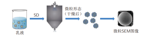 噴霧干燥是將液體霧化成小的液滴,然后通過熱風除去水分形成顆粒的干燥技術。該干燥過程包括:液體流經噴嘴被霧化,再與熱空氣接觸,使水分高溫蒸發,最后回收粉末。目前,噴霧干燥以其高效、簡單、經濟的特點成為最常用的粉體制備技術。