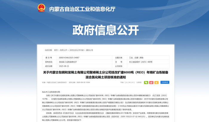 中國(guó)粉體網(wǎng)訊 內(nèi)蒙古包鋼和發(fā)稀土有限公司聚峰稀土分公司近日獲得官方核準(zhǔn),將實(shí)施技改擴(kuò)建6000噸REO(稀土氧化物)稀土分離生產(chǎn)線項(xiàng)目。