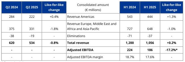 2025年上半年歸屬于集團股東的凈利潤為7000萬歐元,去年同期為1.42億歐元,這反映了當前凈利潤的下降。2025年上半年凈當前自由經營現金流總額為4,000萬歐元,剔除戰略性資本支出后,預計將低于2.7億歐元,低于2024年的2.91億歐元。