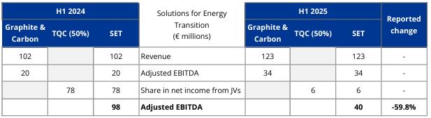 2025年上半年,石墨和碳業務實現收入1.23億歐元,第二季度確認了全年良好的開端。銷售增長主要得益于強勁的終端市場,尤其是電動汽車和導電聚合物、市場份額的提升以及新產品的推出。
