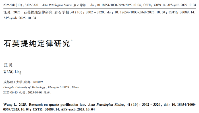 近三年,汪靈教授進(jìn)一步補(bǔ)充實(shí)驗(yàn)數(shù)據(jù),最終完成了《石英提純定律研究》一文,并于近日在《巖石學(xué)報》高純石英專題發(fā)表。該文章研究和探討了石英提純定律的實(shí)驗(yàn)依據(jù)、理論依據(jù)及重要意義,同時還分析和回答了一些高純石英行業(yè)比較關(guān)心的重大理論問題。