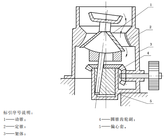借助于旋擺運動的動錐(正置錐),周期性靠近或離開定錐(倒置錐)的表面,使進入破碎腔里的礦石不斷地受到擠壓和剪切作用而破碎的機械。