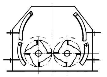 雙輥破碎機:兩個處在同一水平面上的輥子向背旋轉或相向旋轉,使物料在兩輥間被破碎的輥式破碎機。