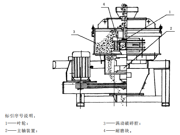 借助高速旋轉的葉輪,使進入葉輪的物料在離心力作用下高速發射,與進入渦動腔的物料相互沖擊破碎的立式破碎機械。