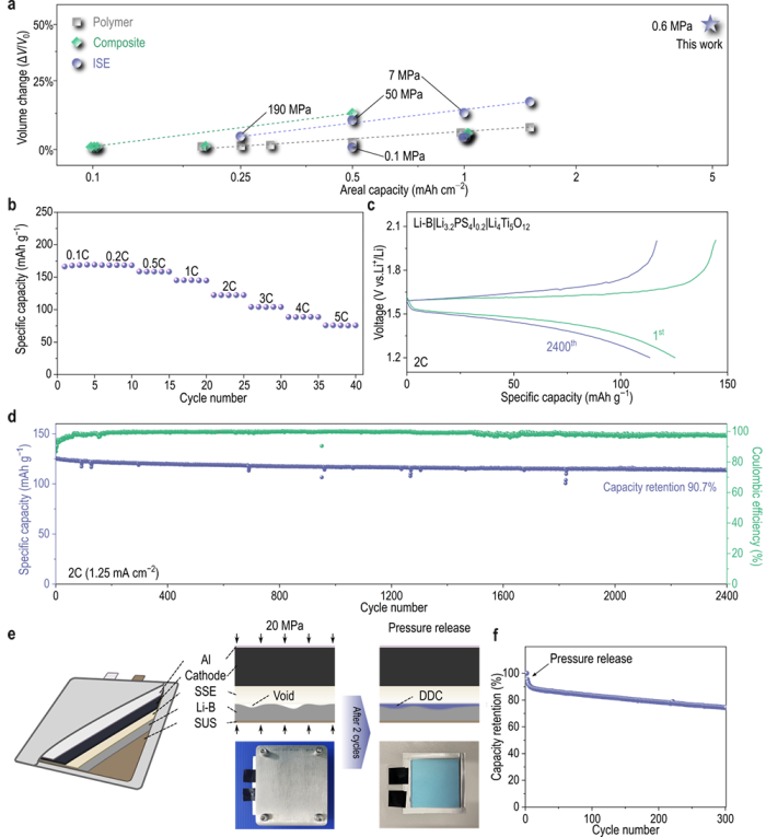全固態(tài)金屬鋰電池因高安全性和能量密度雙重優(yōu)勢潛力,被視為下一代儲能器件突破的重要方向,解決固-固界面動態(tài)接觸問題是推進工程化應用的全球共性挑戰(zhàn)。全固態(tài)金屬鋰電池“制造”和“運行”分別要經(jīng)歷“高”和“低”兩種壓力,在高壓力下金屬鋰發(fā)生蠕變易引發(fā)電池短路,而低壓力下固-固界面又會接觸不良,金屬鋰負極本身的體積效應嚴重,循環(huán)中界面劣化問題嚴重。