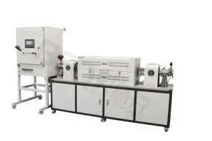 1、該款設(shè)備由控制柜和加熱爐組成,控制柜為密封殼體,內(nèi)置電路板和氣路板,外部可通過觸摸屏及 手閥操控電路和氣路;加熱爐由一臺(tái)三溫區(qū)開啟式管式爐及相應(yīng)配件組成,爐管可回轉(zhuǎn);