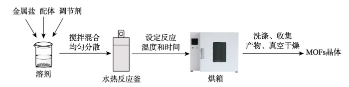 水熱/溶劑熱法制備MOF的一般流程示意圖