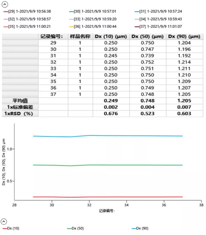 激光粒度儀測量顆粒粒度具有測量動態范圍寬、分析速度快、具有可驗證的準確度和重復性等優點,可以提供顆粒粒徑以及粒徑累計分布值。